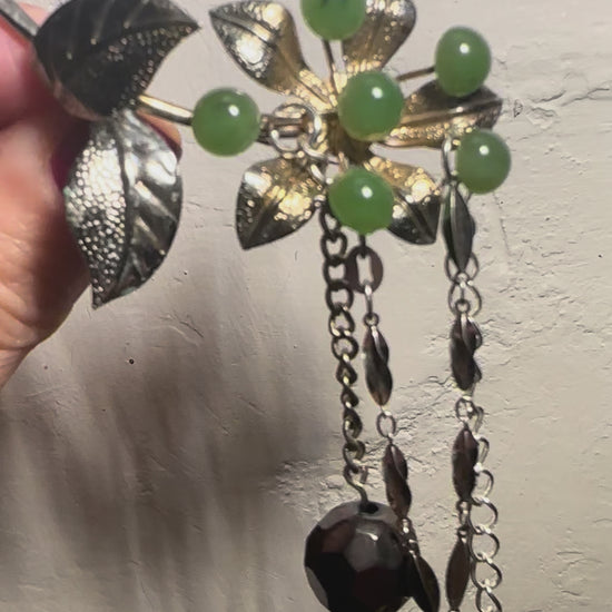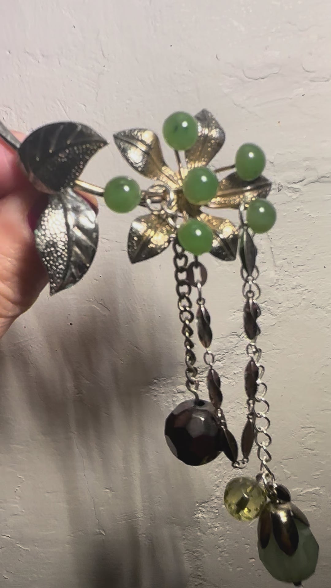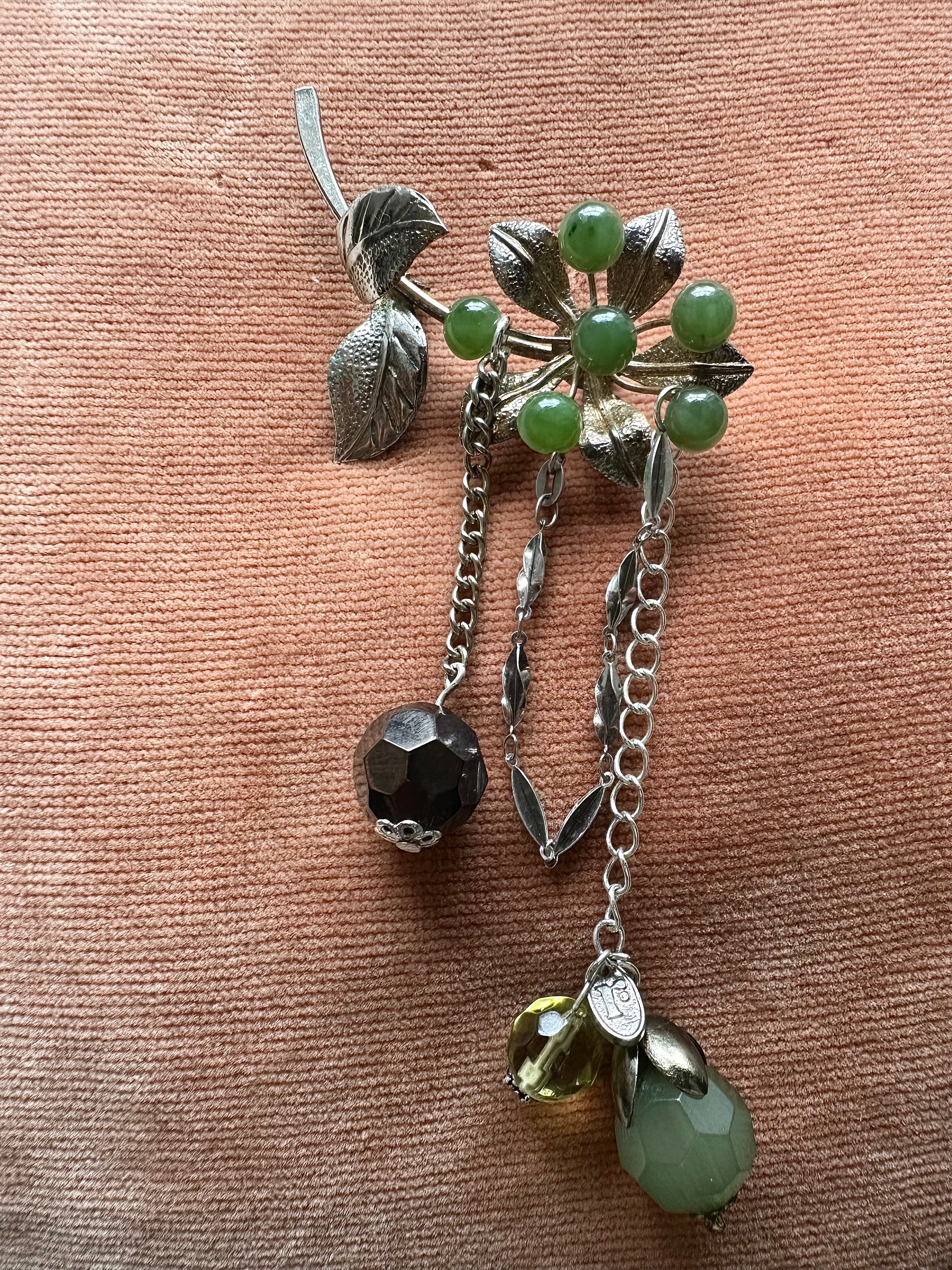 SOLD Vintage flower brooch with a one-of-a-kind charm curation in green tones. Finished with a Regilt tab.