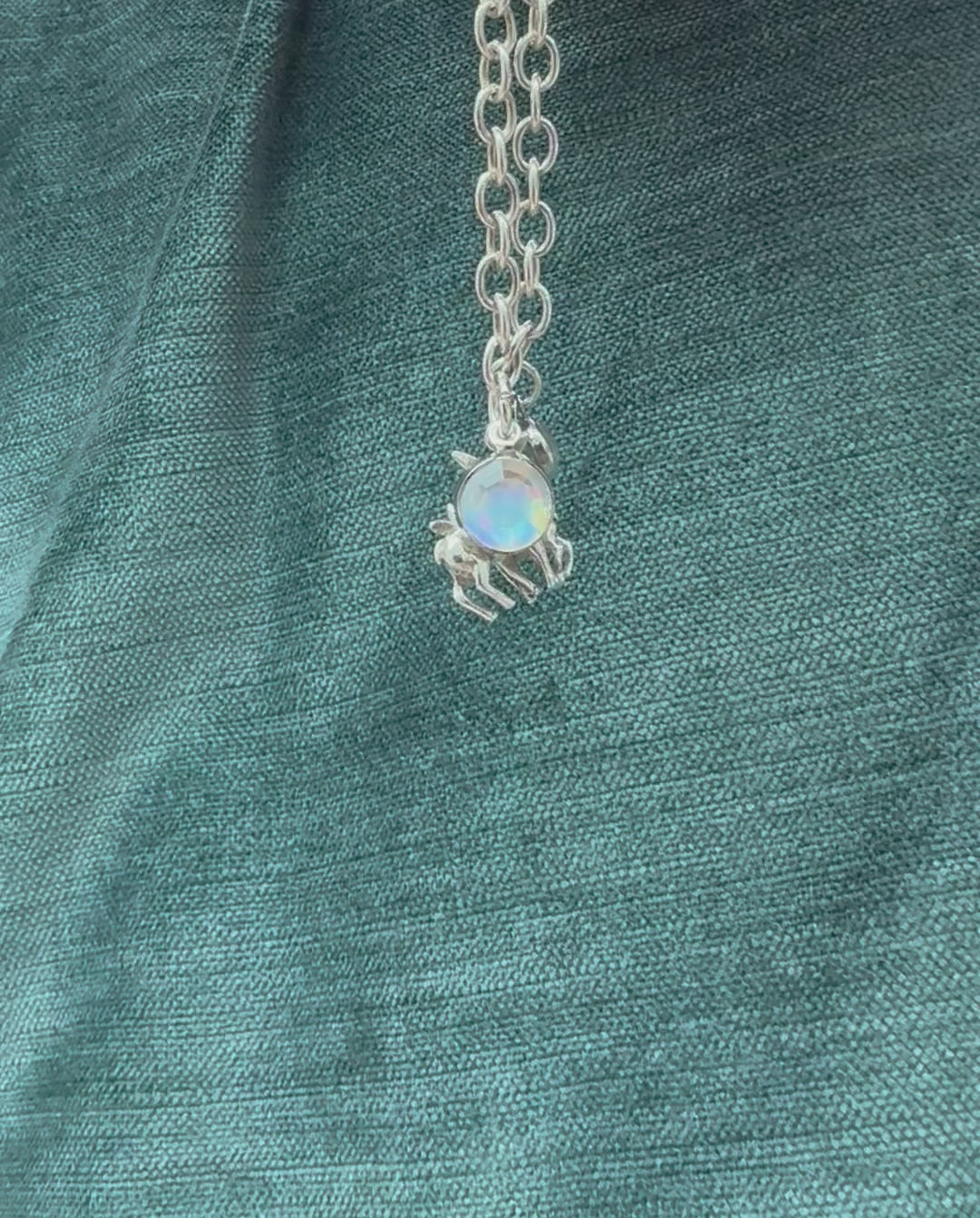 One-of-a-kind charm bracelet sourced from vintage treasures. T-bar chain bracelet is a timeless style which compliments contemporary dressing. A sterling silver mother and baby deer charm is intricately crafted and is a beautiful example of work from the era. Mid and mini size faceted glass droplets and Regilt tab complete the piece. This bracelet would make a lovely new baby gift or baby shower gift for the mum-to-be, or between mother and child for mothers day and special celebrations.
