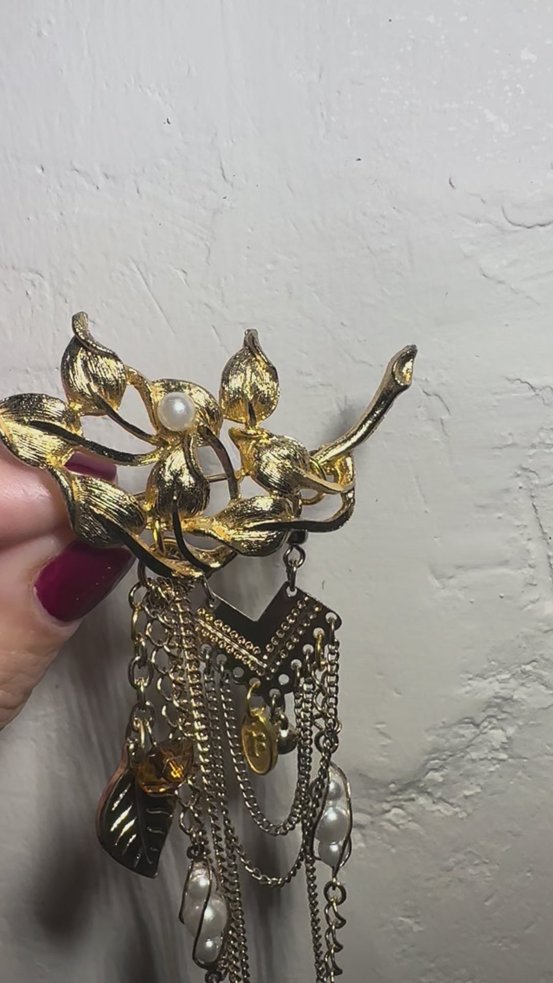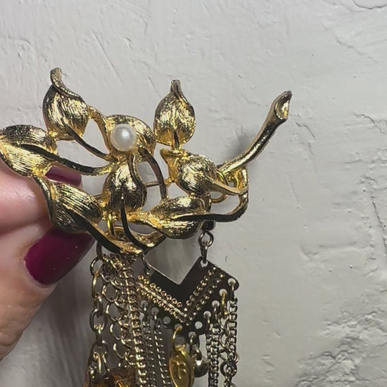 Length from top of brooch to end of last dangle: 10cm
